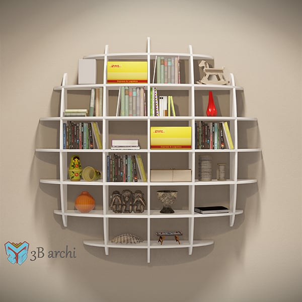 Sphere Bookshelf, Parametric waffle shelf, Hemispherical Shelf, Wall Bookshelf, Waffle shelf, Wall Decoration, Parametric Wall Shelf, vector